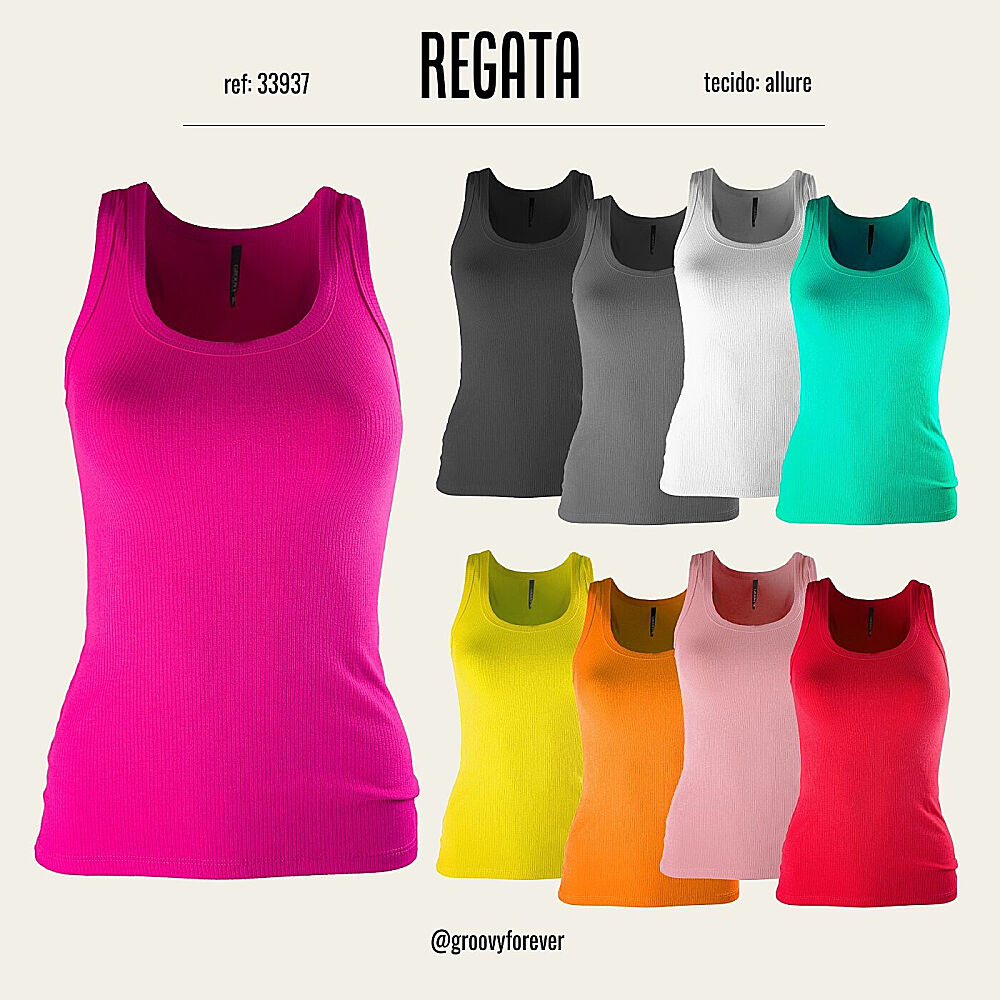 Regata básica para o dia a dia com decote quadrado produzida com malha Allure, um canelado alongado produzido com Elastano e Viscose Vortex sustentáveis. Alta elasticidade, resistência e abrasão ao corpo.
