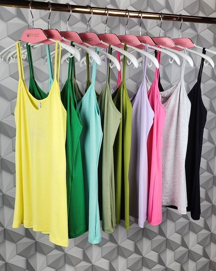 Regata confeccionada em malha vis up, modelo com alça fina. Busto P veste 36/38 M veste 40 G veste 42 Modelo veste P