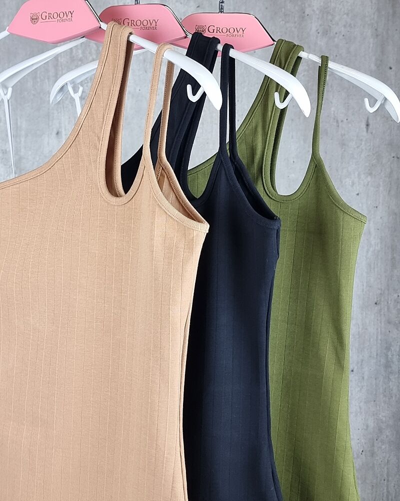Vestido em malha canelada Bali, alça dupla. Manequim P veste 36/38 M veste 40 G veste 42