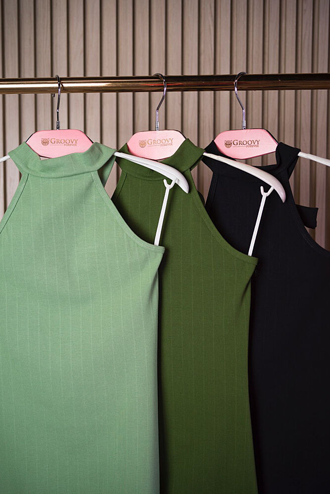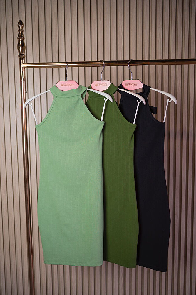 SH - Vestido curto canelado frente única, com amarração no pescoço. Confeccionado com o tecido Dream, uma malha levinha e de ajuste impecável ao corpo. Ideal para dias quentes!