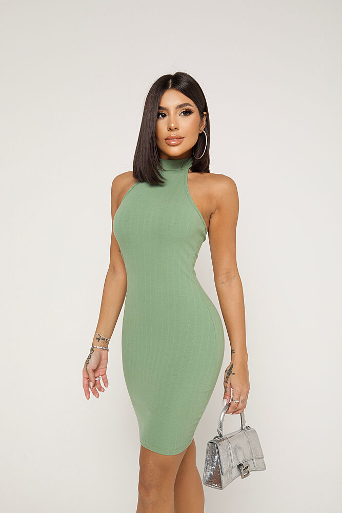 SH - Vestido curto canelado frente única, com amarração no pescoço. Confeccionado com o tecido Dream, uma malha levinha e de ajuste impecável ao corpo...