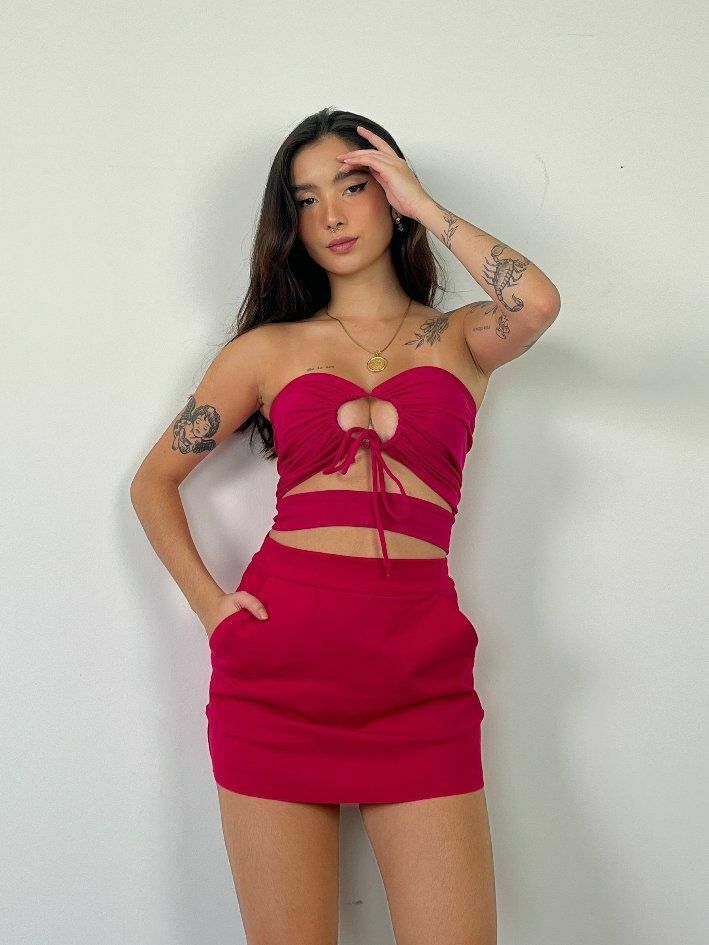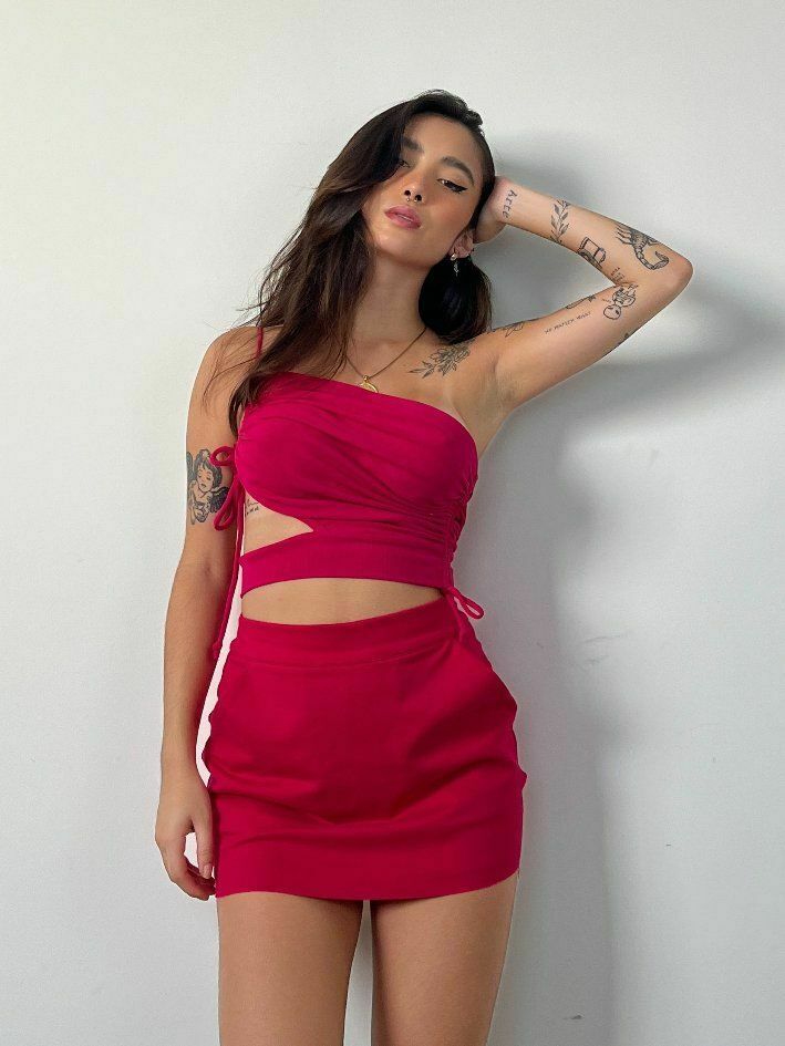 SH Cropped em malha tipo bandagem com detalhe franzido regulável na lateral e alça assimetrica. Possui várias formas de usar e amarrar. Busto P 40/42 M 44 G 46 Modelo veste P