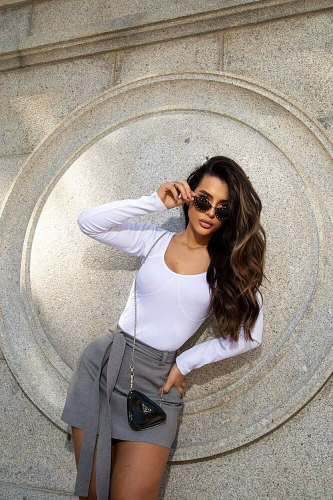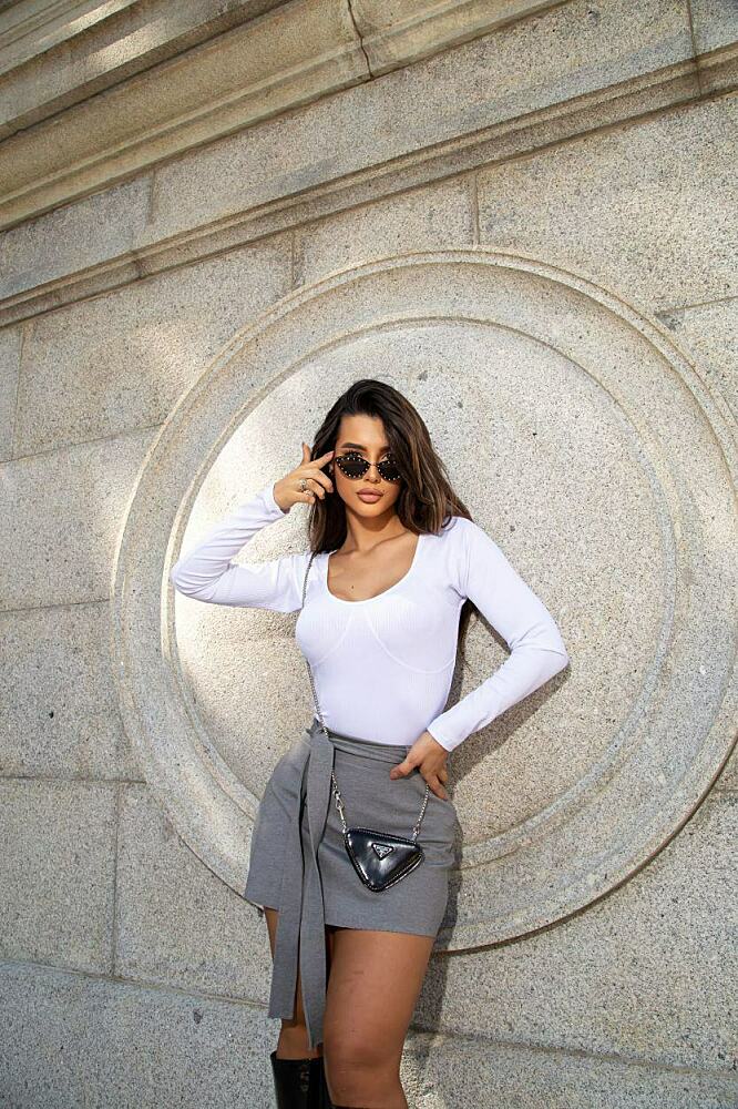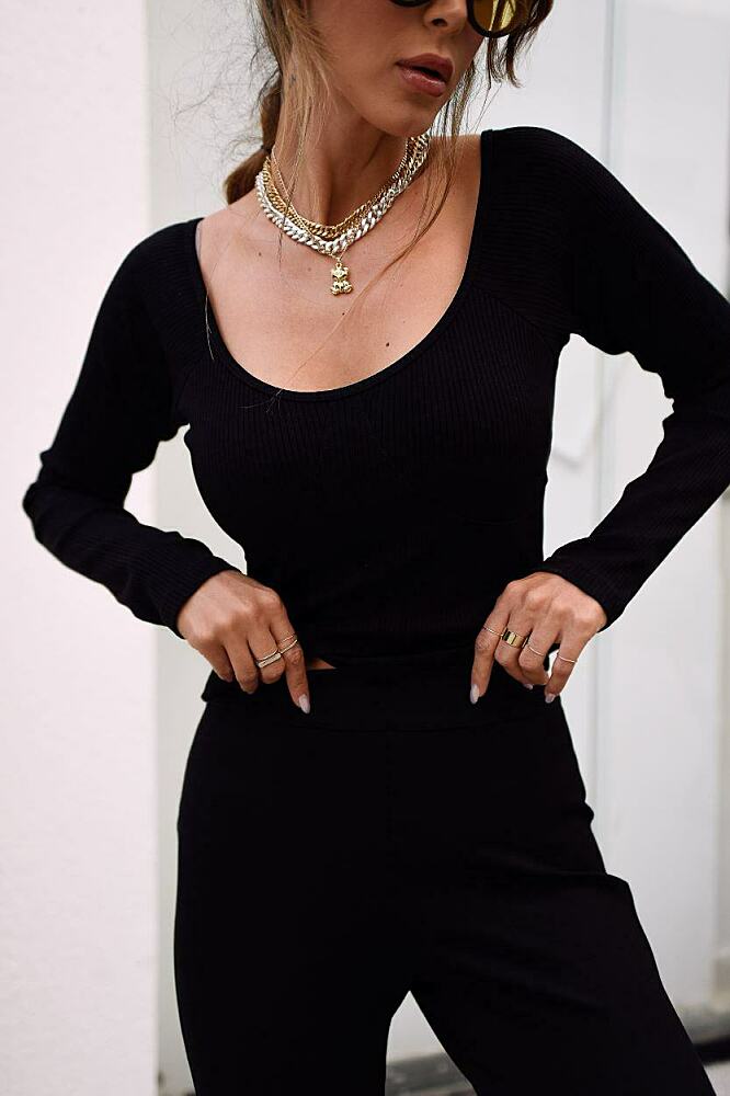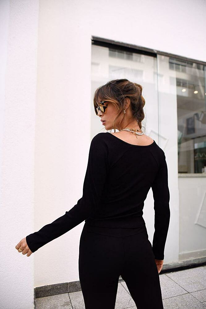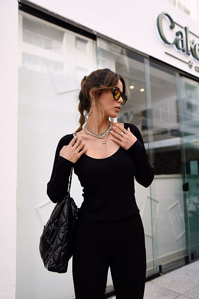 SH Blusa confeccionada em malha canelada allure strong, modelo decote em U, manga longa com costura no busto. Busto P veste 36/38 M veste 40 G veste 42 Modelo veste P