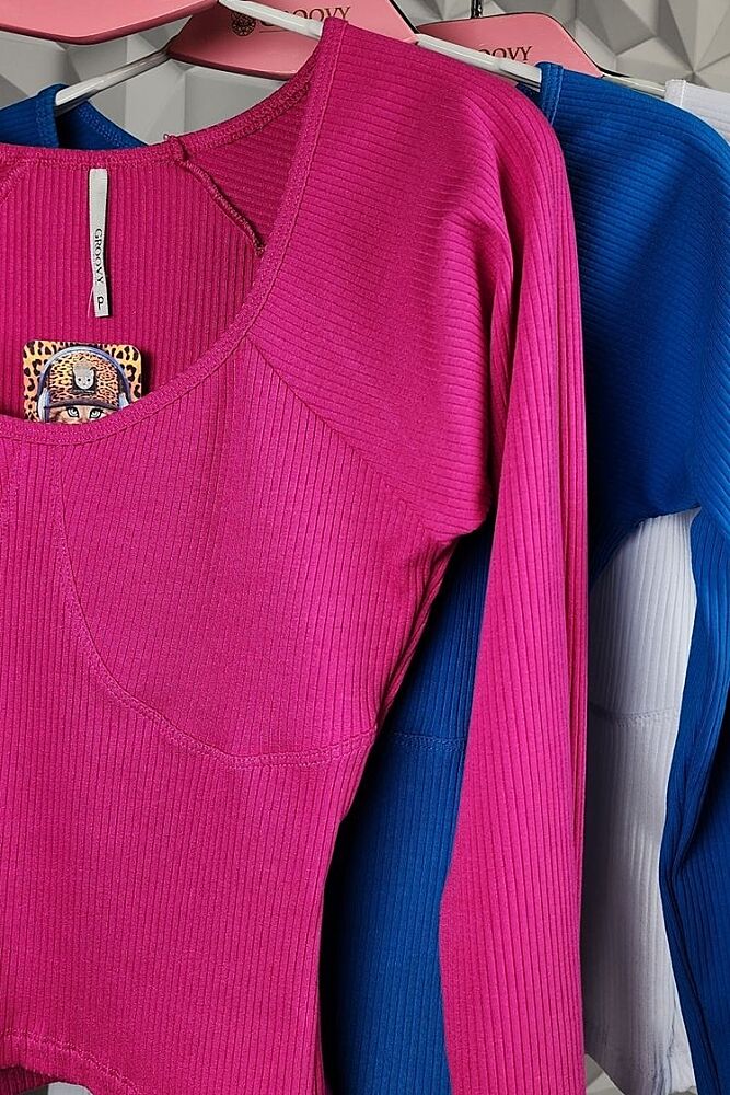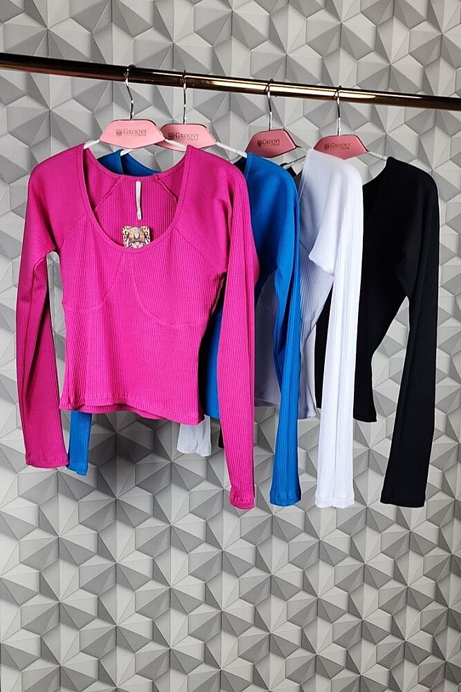 SH Blusa confeccionada em malha canelada allure strong, modelo decote em U, manga longa com costura no busto. Busto P veste 36/38 M veste 40 G vest...